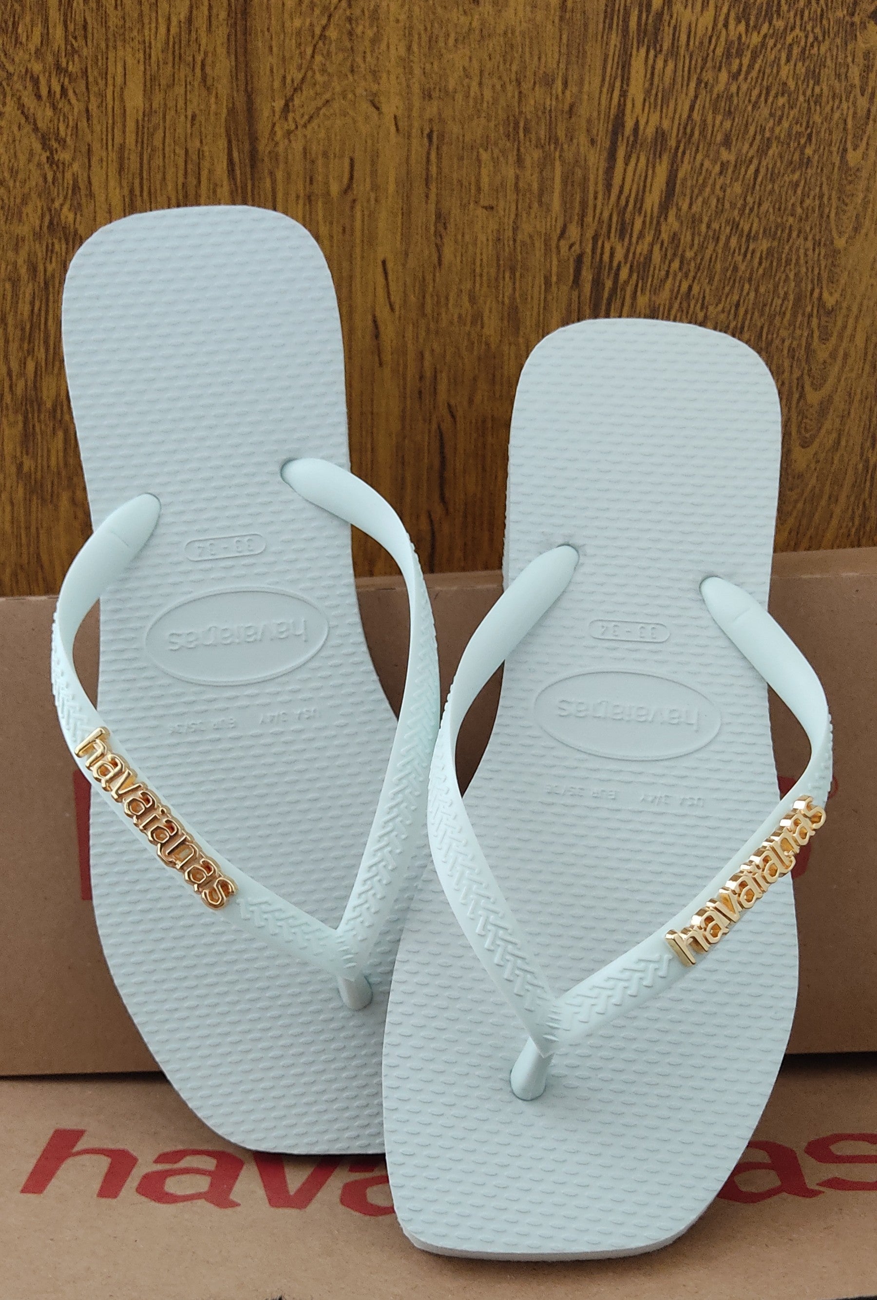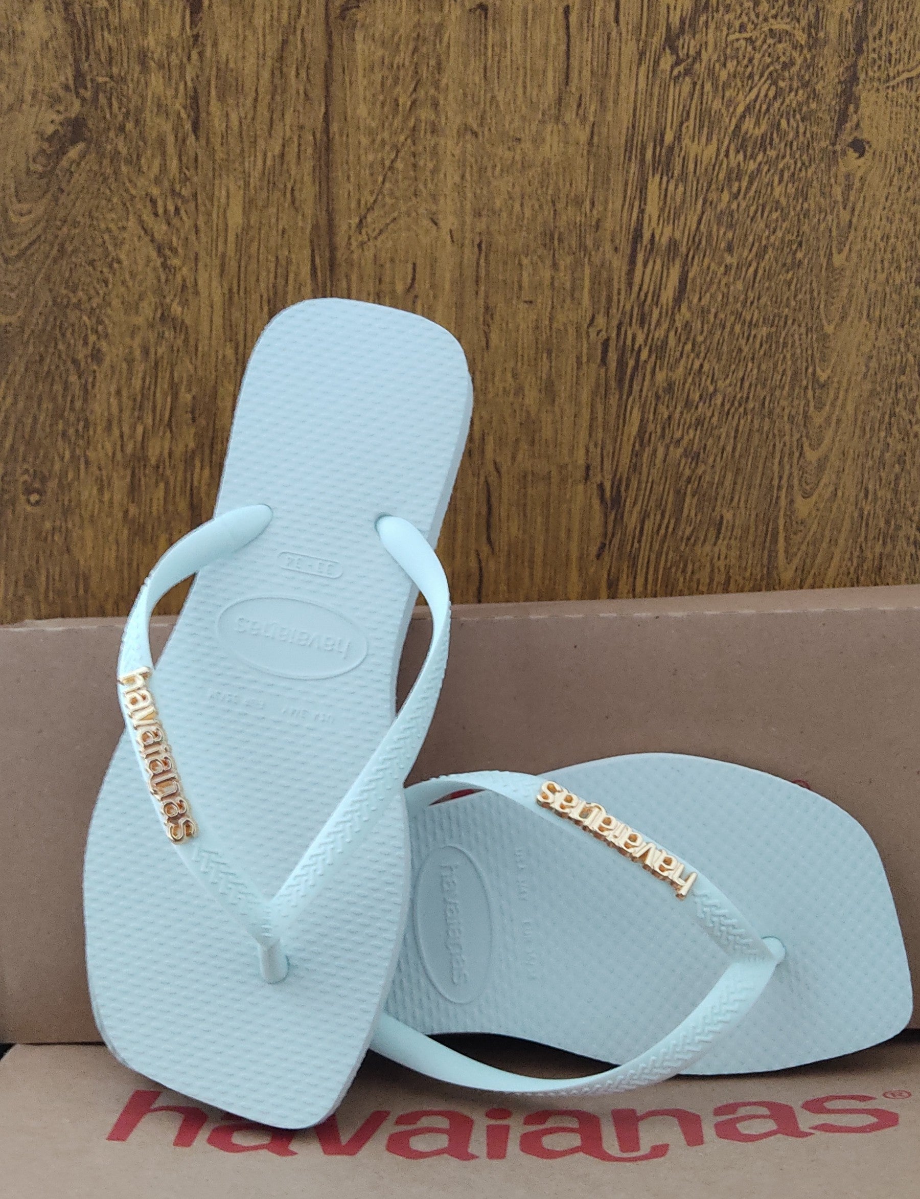 Havaianas Slim Square com Logomarca Metalizada Dourada: